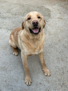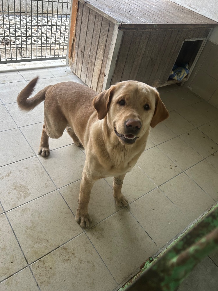 je kříženec labradorského retrívra, pes starý asi 10 měsíců. Nalezen – lokalita: Trmice, dne 23.3.2026