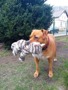 Mája teď dostala, k Velikonocům, nového, dalšího plyšáka a má z toho obrovskou radost!