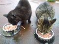 kočičky v útulku dostaly masíčko