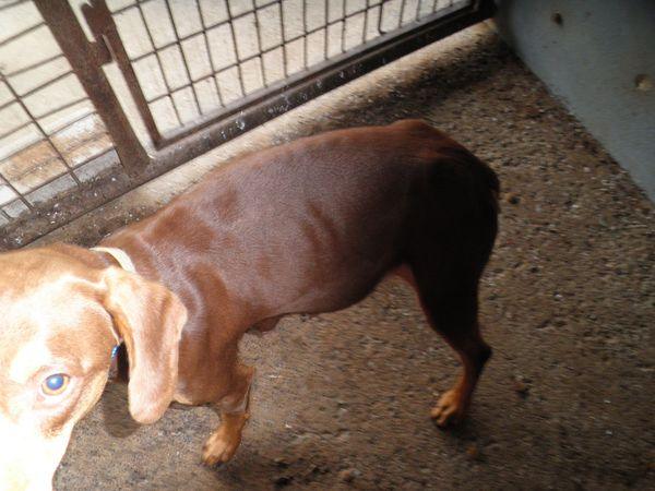 Tato asi 1,5 roku stará fenka se dostala do útulku za velmi dramatických okolností. Někdo jí uvázal vysokobřezí a vyhublou na kost u útulku. Rita (tak jsme jí pojmenovali ), se uvolnila a běžela za odjíždějícím autem. Paní, která vše viděla, nám zatelefonovala. Rozeběhla se akce odchytu téhle vystresované fenky, kličkující po silnici mezi auty. Naštěstí jsme jí v dešti a již unavenou dostihli, zahnali na pole, kde jsme šlápli na konec dlouhého lana, které táhla za sebou, a tím ji chytli. Následovalo vyšetření u našeho veterináře a následné umístění k nám do útulku. Bylo jasné, že bude každým dnem rodit. Vystresovaná tím, že jí majitel takovýmto způsobem vyhublou a těsně před porodem opustil další noc porodila.